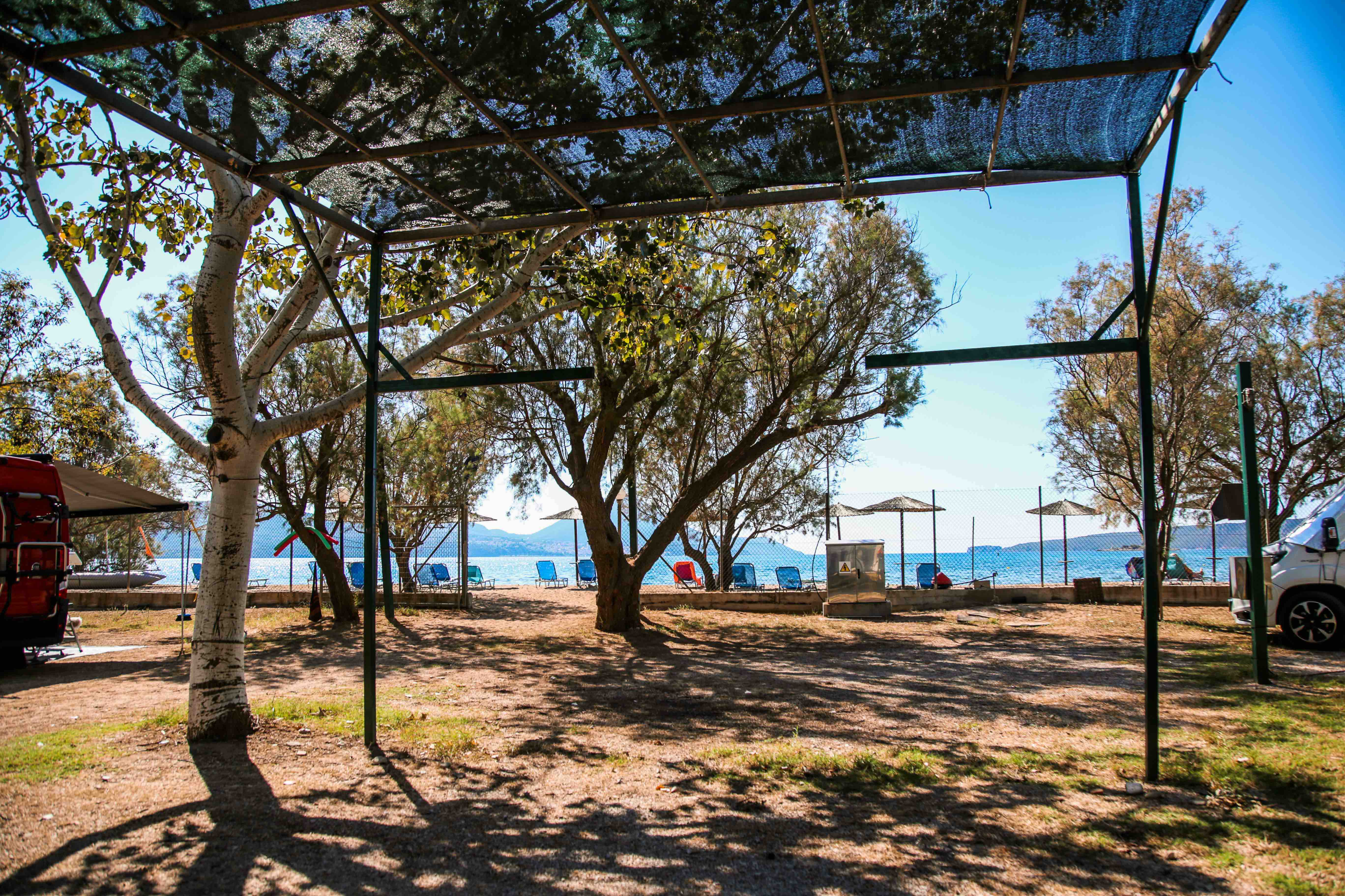 Emplacements dans la première zone, au bord de la mer avec vue illimitée, ombre naturelle et artificielle. Recommandé pour les petits camping-cars, campervans, petites caravanes et tentes.